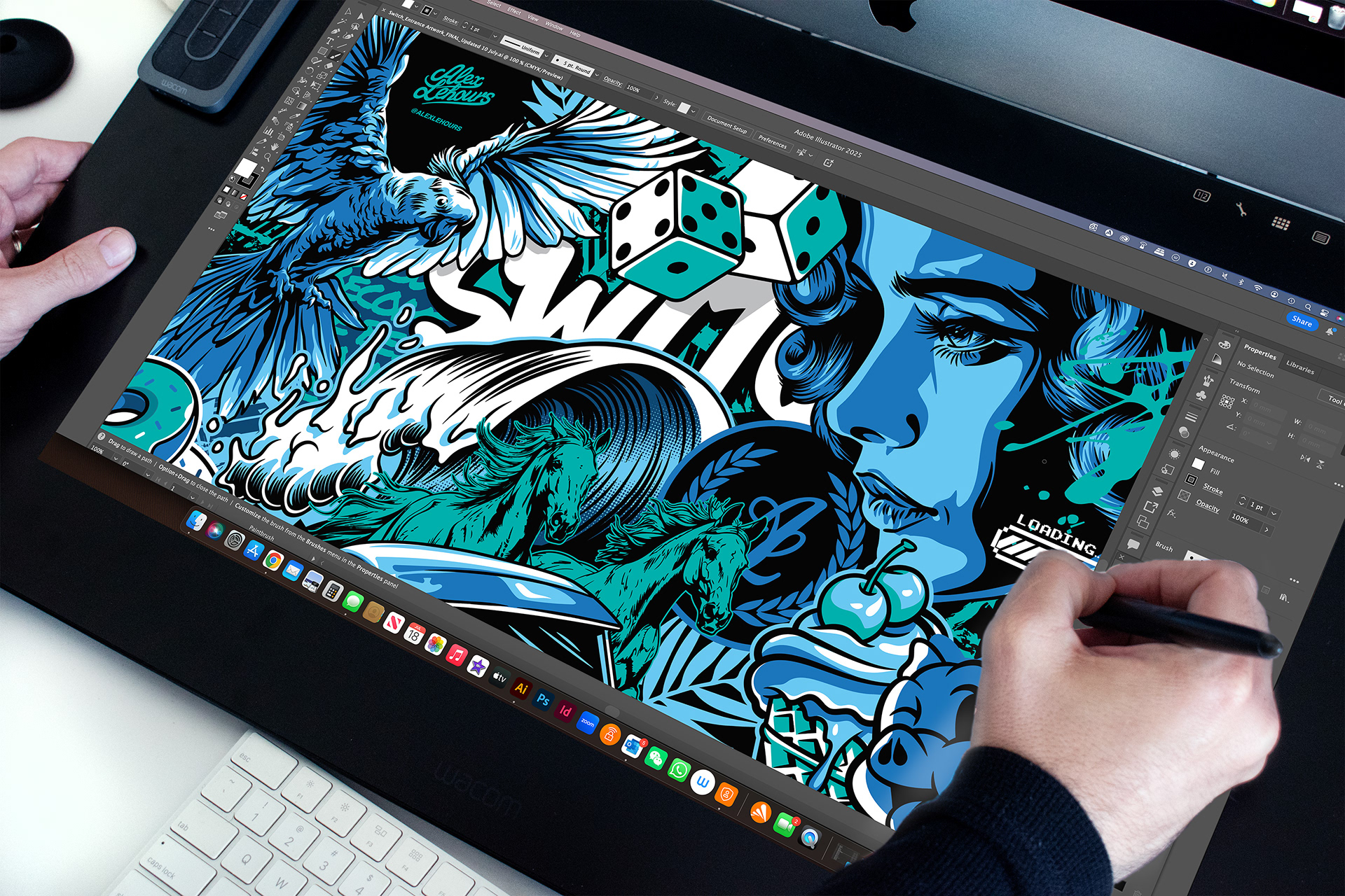 Created using Adobe Photoshop and Illustrator and printed and installed by Mister Wallpaper.